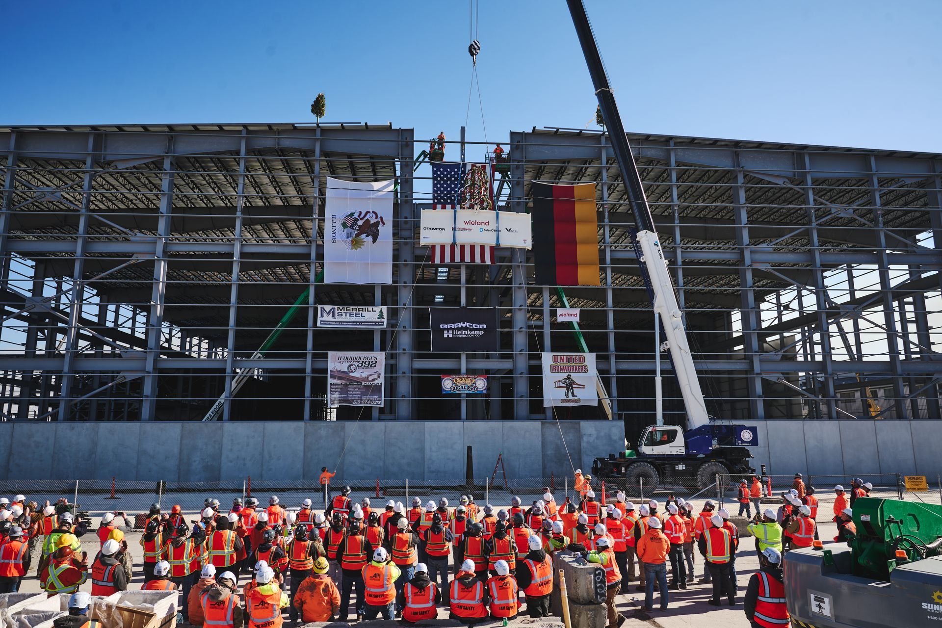 Recently, our team gathered to celebrate the topping out of Wieland Group’s Modernization & Expansion Project, an important step toward delivering a new 400,000 sq. ft. rolling mill that will support the next generation of copper and copper‑alloy production.